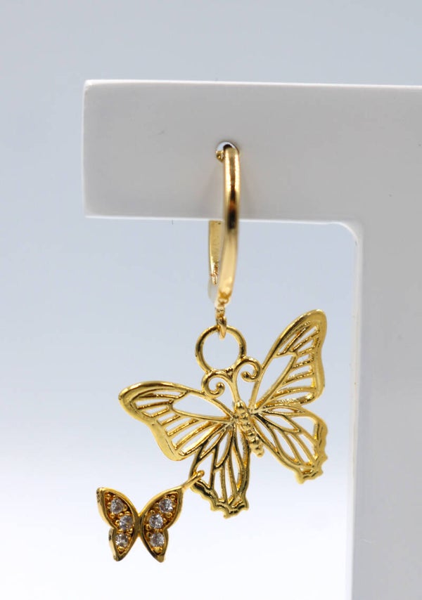 Gold plated butterfly earrings. Het kleine vlindertje hangt los als bedeltje.